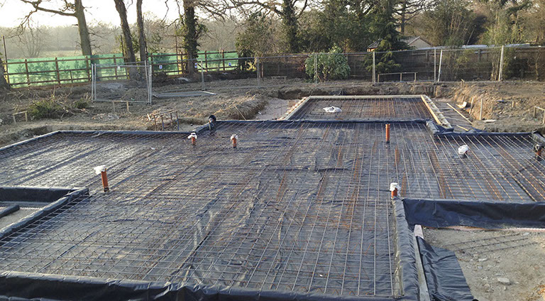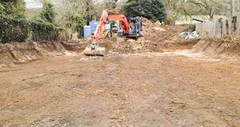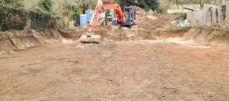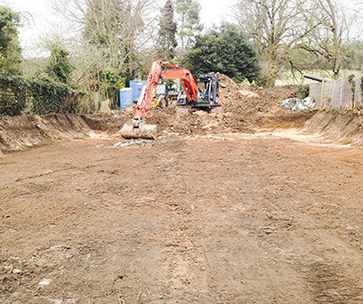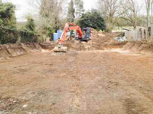 To clear a brownfield site and install foundations, drainage and services for a new family home. To build garden retaining walling, fencing and landscaping.